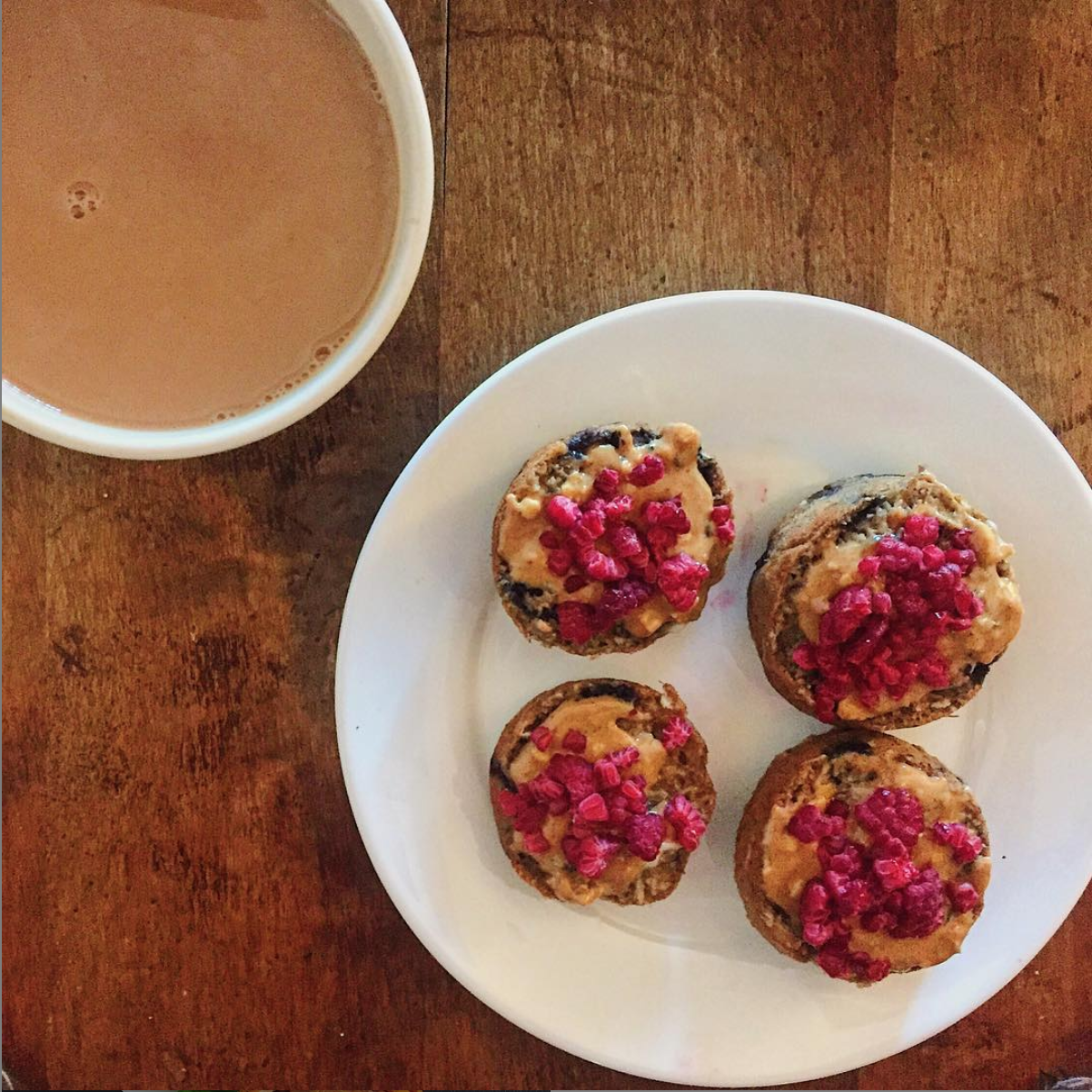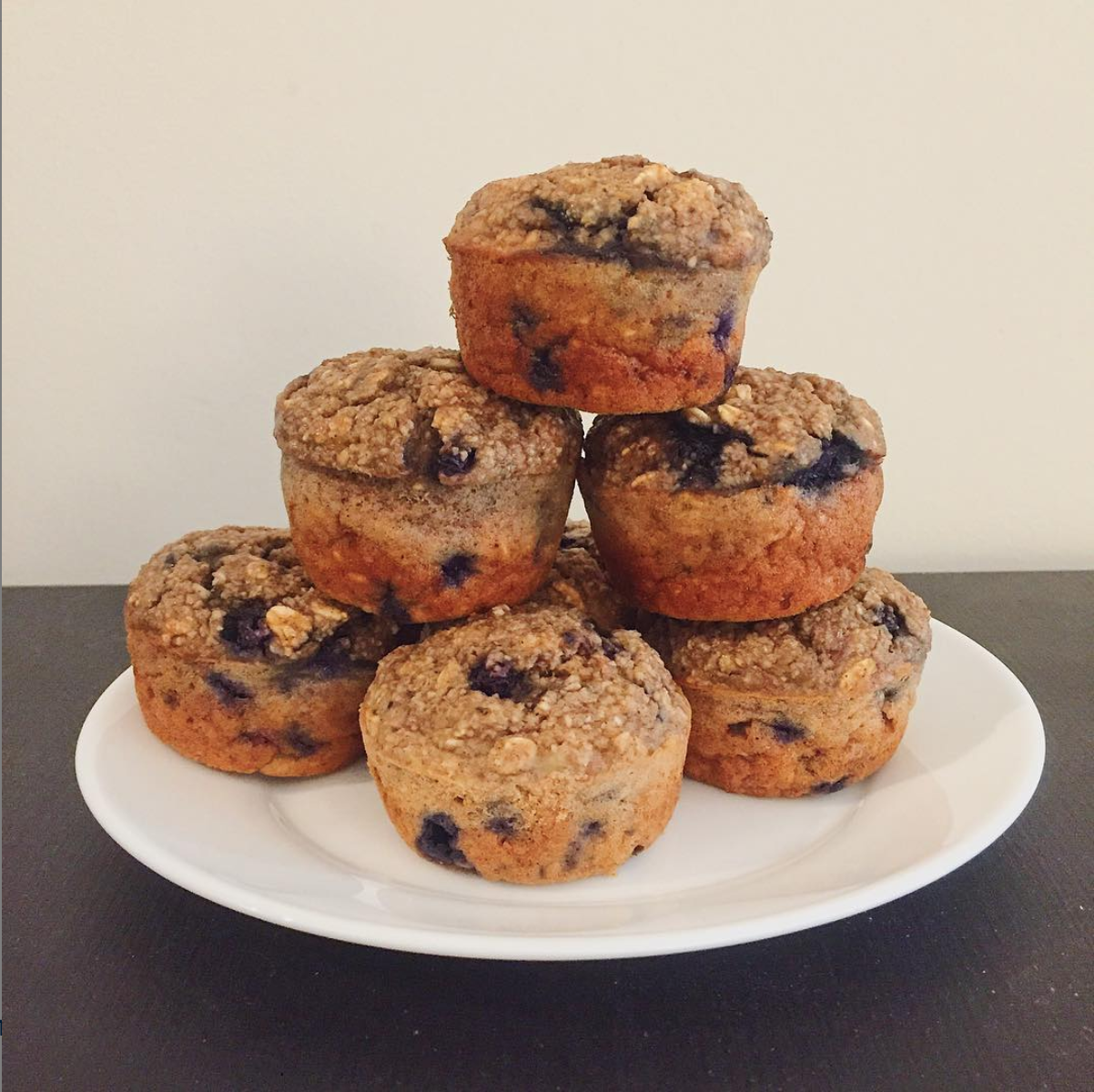 I have been LOVING these banana oat muffins. I added lemon zest and blueberries for extra flavour They are a great option to meal prep on the weekend, then enjoy all week. These portable muffins are great for breakfast or snacks on the go. I love eating them topped with natural peanut butter and raspberries.