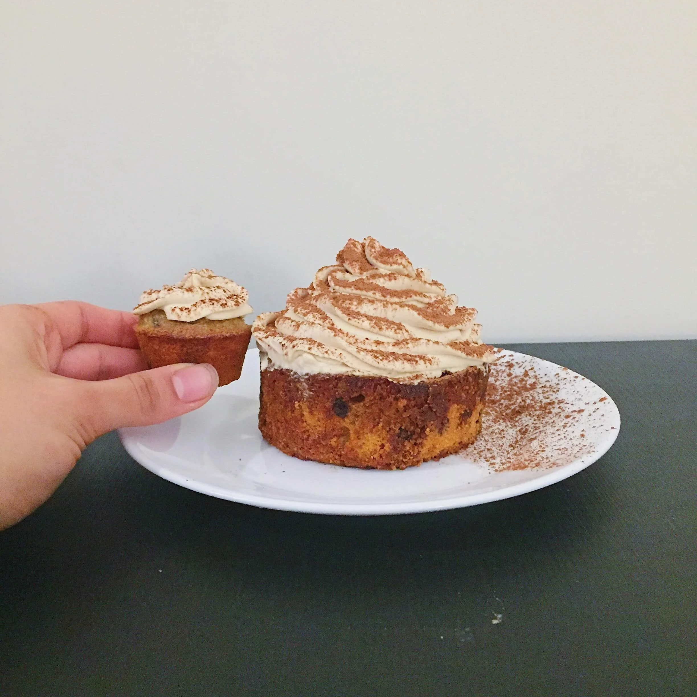 I love this recipe for these yummy TIRAMISU CUPCAKES, which I made for a friend’s birthday. Any coffee lover will love these cupcakes. I’m not a coffee drinker myself, and even I enjoyed them. I also made them mini and added chocolate chips. These are a great treat to make for a special occasion, or just for your friends. With the leftover batter I made one GIANT cupcake that was saved for the birthday girl.